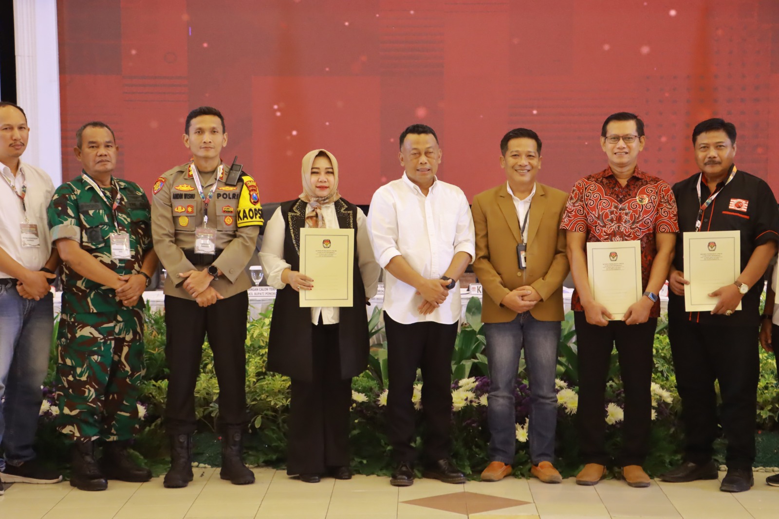 Rangkaian kegiatan ditutup dengan penyerahan Surat Keputusan (SK) Nomor 11 Tahun 2025 dari KPU kepada pasangan calon terpilih, disaksikan oleh Forkopimda Ponorogo.