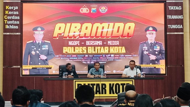 Blitar,MHI- Guna memperkuat tali silaturahmi dan sinergi antara kepolisian dengan awak media, Polres Blitar Kota menggelar kegiatan bertajuk Piramida (Ngopi...