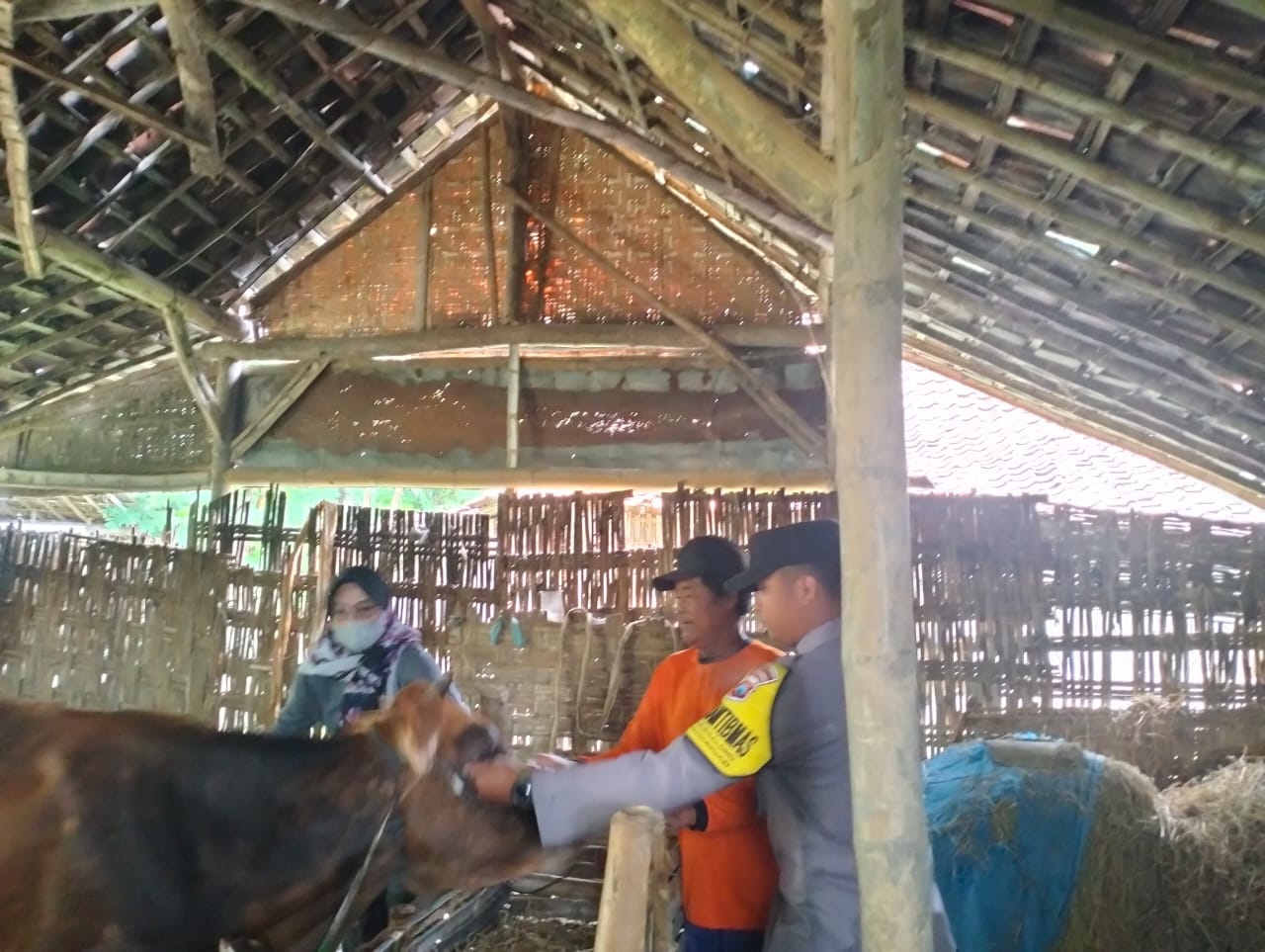 Cegah Penyebaran PMK di Ngawi, Polsek Kwadungan Dampingi Vaksinasi Ternak