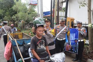 Bukan ditilang, namun mereka justru mendapatkan helm gratis dan diberikan peringatan.