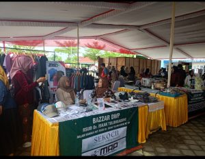 ” Hari ini kami gelar bazar bersama DWP dan besok, Jum’at pagi ada jalan sehat juga tapi besok bazar masih ada lagi dan buka lebih pagi yakni jam 06.00, kalau hari ini buka jam 08.00 sampai jam 16.00“.