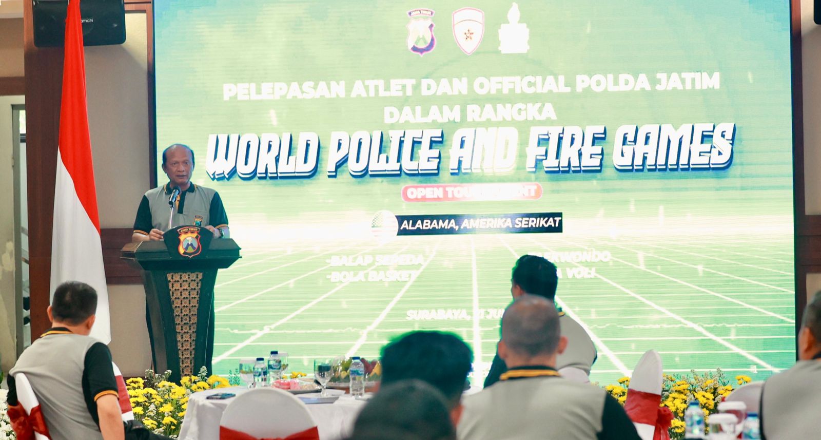 SURABAYA, MHI – Ada 24 atlet personel Polda Jatim yang mengikuti Kejuaraan Internasional World Police And Fire Games Open Tournament di di Birmingham Alabama Amerika Serikat.