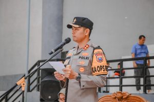 “Selama pertandingan, junjung tinggi sportifitas sesama atlit,” tutur Kapolres Ngawi dalam sambutannya, di hadapan peserta upacara
