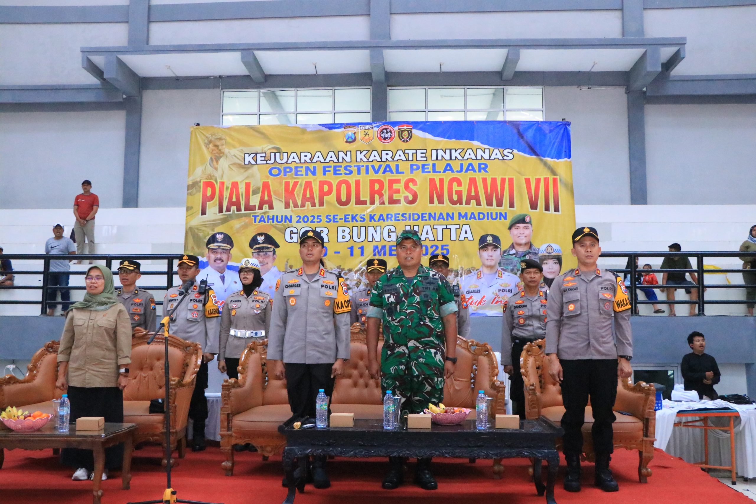 Ngawi, MHI – Kapolres Ngawi AKBP Charles Pandapotan Tampubolon, S.I.K., S.H., M.H., membuka kejuaraan karate Inkanas Open Festival Pelajar Piala Kapolres Ngawi VII tahun 2025 Se-eks Karesidenan Madiun, Sabtu (10/5/2025)