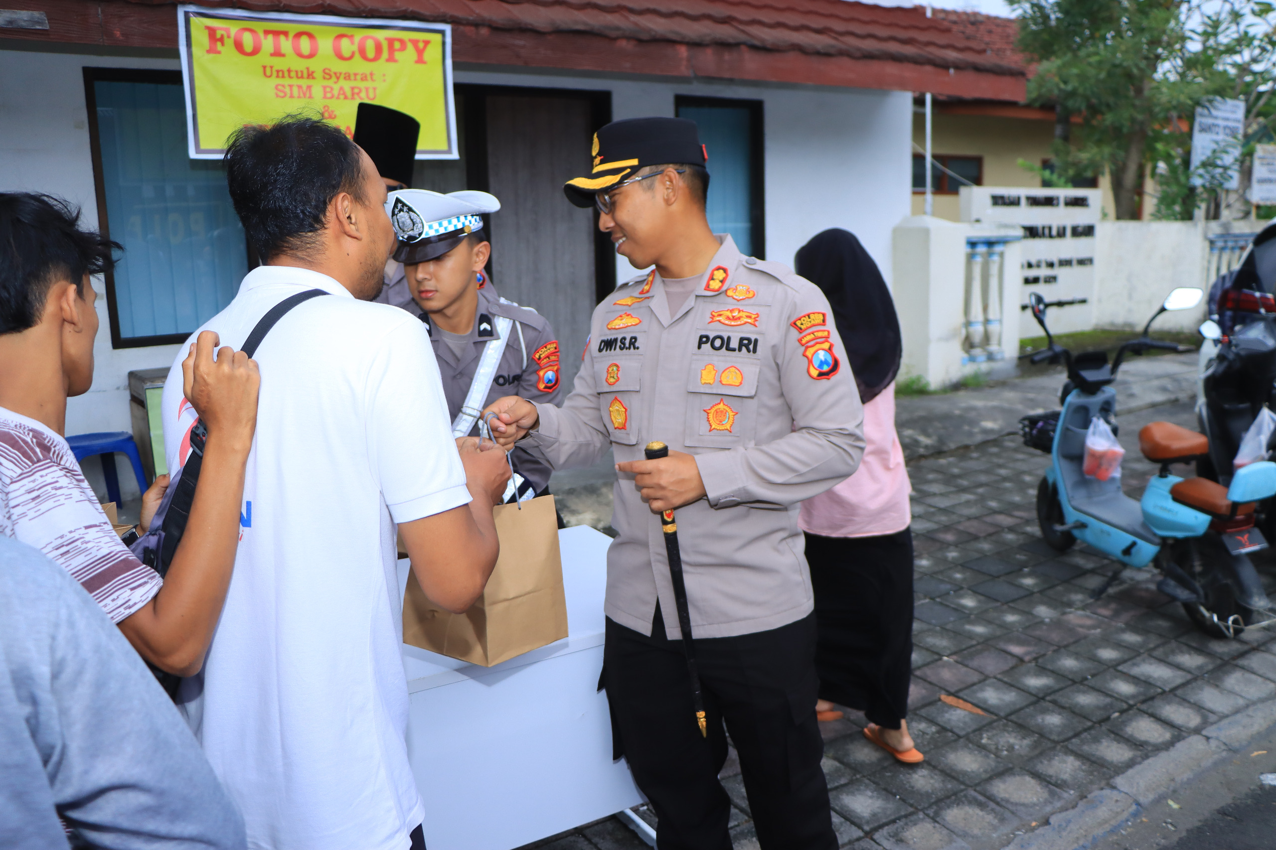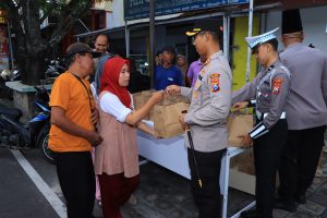 “Bila ada hal yang mencurigakan, atau butuh bantuan polisi, segera telpon call center 110,” tutur Kapolres Ngawi, sembari memberikan takjil ke pengguna jalan yang melintas di depan kantor Polres Ngawi Jl. JA. Suprapto, Ngawi
