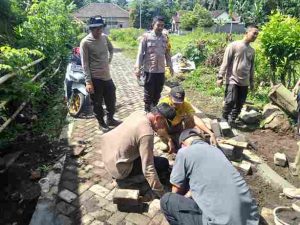 Kapolsek Sukowono Peduli Lingkungan Ajak Anggota Lakukan Kerja Bakti Rehabilitasi Jalan Rusak Bersama Masyarakat