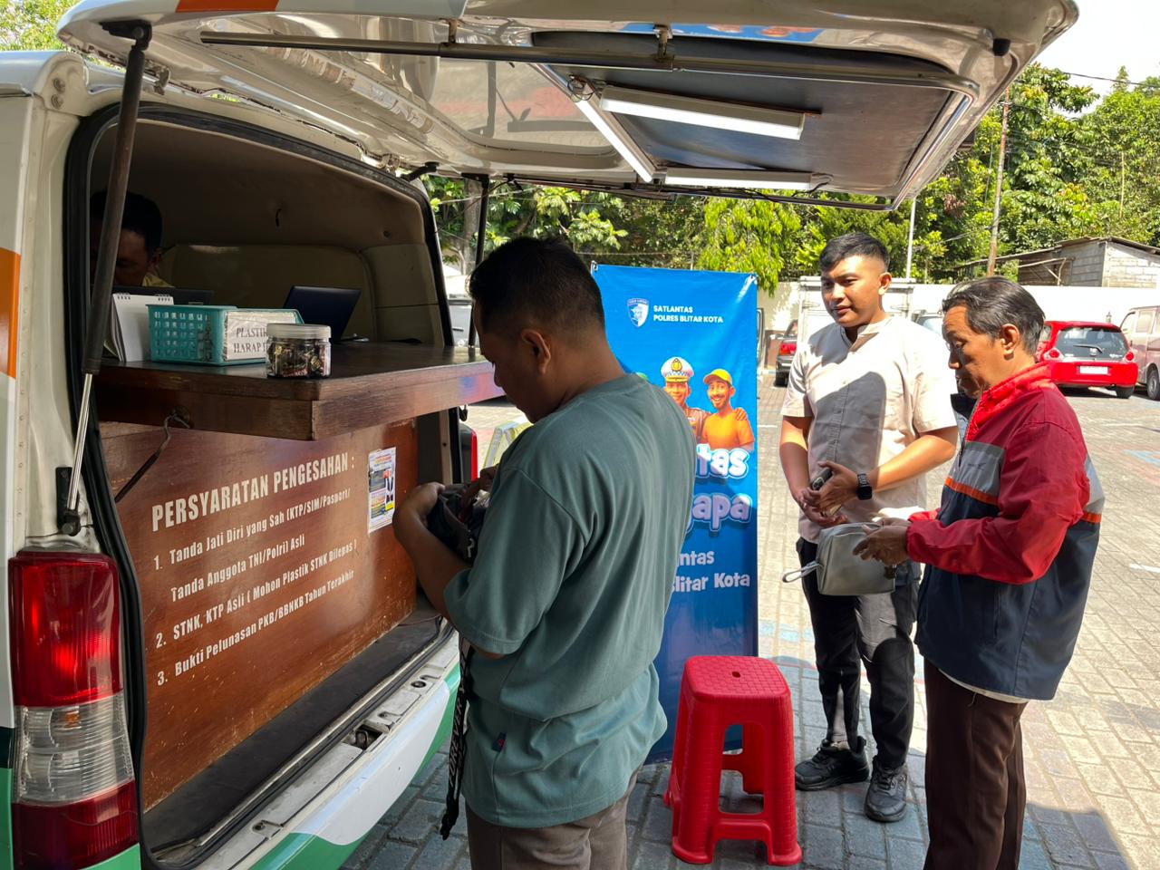 Blitar – Petugas Pelayanan Satpas dan Samsat Satlantas Polres Blitar Kota melaksanakan kegiatan Polantas Menyapa kepada masyarakat pada Senin, 17 November 2025. Melalui program ini, petugas memberikan pelayanan sekaligus penyuluhan mengenai standar pelayanan di Samsat, termasuk jenis layanan dan Tarif PNBP (Penerimaan Negara Bukan Pajak) yang berlaku.