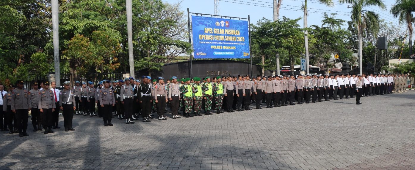 Nganjuk, MHI – Operasi Patuh Semeru 2025 dengan mengusung tema dengan tema “Tertib Berlalu Lintas Demi Terwujudnya Indonesia Emas” resmi dimulai di wilayah hukum Polres Nganjuk. Kegiatan ini diawali dengan Apel Gelar Pasukan yang dipimpin langsung Kapolres Nganjuk AKBP Henri Noveri Santoso, S.H., S.I.K., M.M., di lapangan Mapolres Nganjuk dan diikuti oleh para pejabat utama, Kapolsek jajaran, unsur TNI-Polri, Dinas Perhubungan, serta Satpol PP, Senin (14/7/2025).