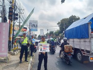 Kegiatan berlangsung secara simpatik, di mana pengendara yang melintas disambut dengan senyum oleh petugas sambil diberikan brosur keselamatan dan ajakan untuk tertib berlalu lintas.