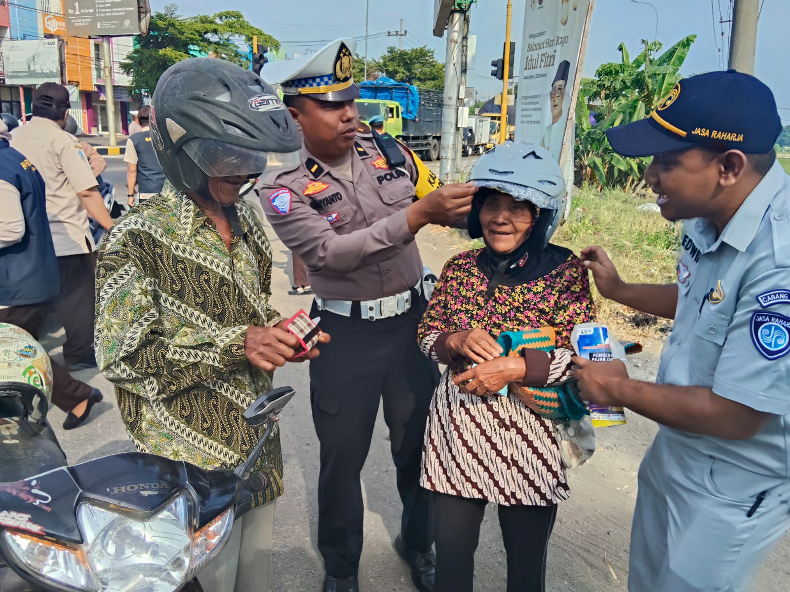 “Ini bentuk penghargaan kami kepada pengguna jalan yang tertib. Bukan hanya edukasi, tapi juga motivasi agar masyarakat semakin peduli terhadap keselamatan,” terang AKP Yuliana, saat memberikan helm kepada pengguna jalan yang sudah tertib.