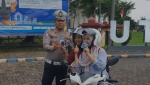 Disela-sela membagikan, anggota Satlantas Polres Bangkalan turut memberikan edukasi singkat, secara humanis dan persuasif.