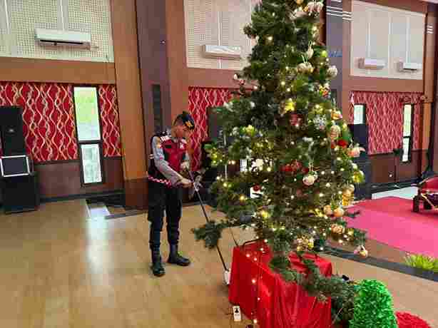 Proses sterilisasi dimulai satu jam sebelum pelaksanaan kegiatan sejak pukul 17.00 WIB hingga selesai. Selama kegiatan berlangsung, petugas menyisir setiap sudut ruangan, mulai dari area pintu masuk, ruang utama ibadah, hingga bagian luar gedung. Seluruh rangkaian kegiatan berjalan dengan tertib, aman, dan lancar tanpa ditemukan hal hal yang mencurigakan.