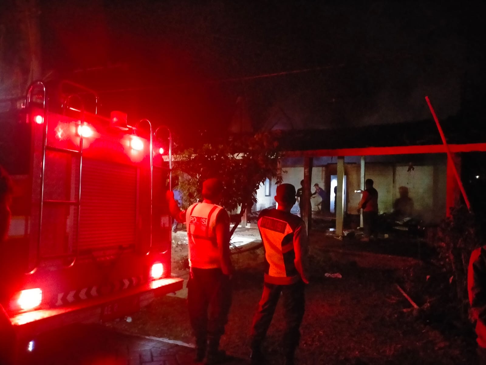 Kapolsek Sine Iptu Sutikno bersama anggota, Babinsa dan petugas identifikasi Polres Ngawi, serta Damkar Kabupaten Ngawi langsung mendatangi lokasi setelah menerima laporan dan saling membantu untuk memadamkan api. Warga sekitar sebelumnya berupaya memadamkan api dan menyelamatkan barang-barang milik korban.