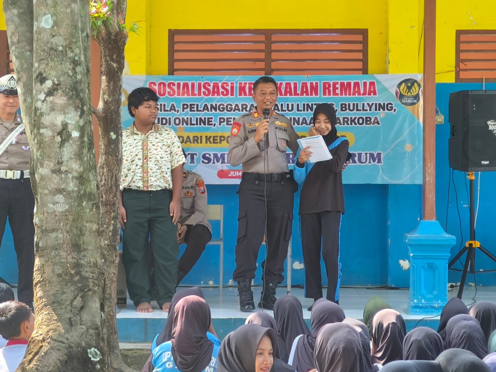 BLITAR, MHI – Dalam rangka memberikan pemahaman dan edukasi sejak dini kepada generasi muda tentang bahaya kenakalan remaja, penyalahgunaan narkoba, serta pentingnya tertib berlalu lintas, Polres Blitar menggelar kegiatan sosialisasi di SMPN 3 Garum. Kegiatan ini berlangsung dengan penuh antusias dan dihadiri oleh berbagai pihak, baik dari jajaran kepolisian maupun pihak sekolah, jumat (25/4/25).