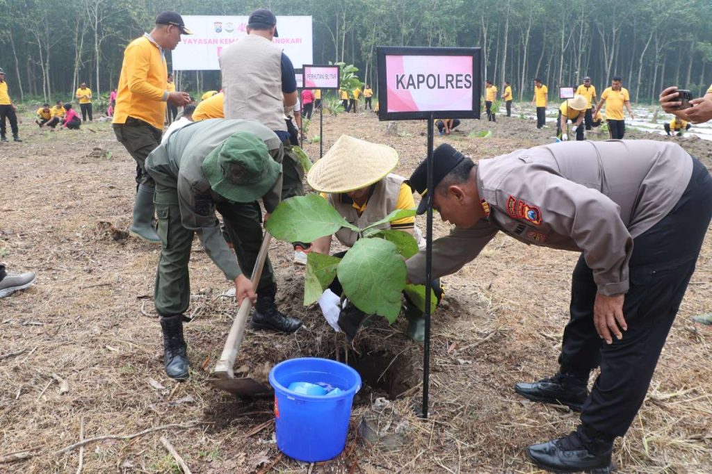Polres Blitar Kota dan Bhayangkari Tanam 170 Pohon di Lahan Kritis Desa Sumberingin Peringati HUT Yayasan Kemala Bhayangkari