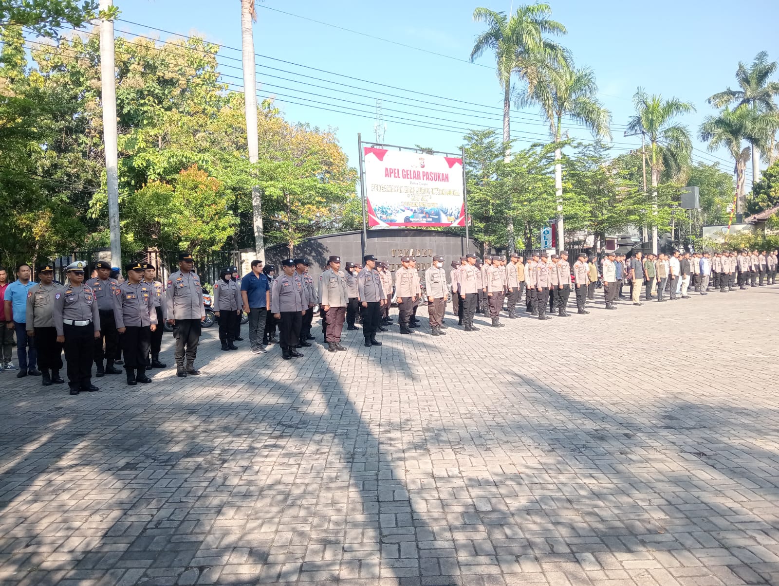 Dalam amanatnya, Wakapolres Nganjuk KOMPOL Andria Diana Putra, S.E., M.H., menyampaikan bahwa sebanyak 500 personel Polres Nganjuk disiagakan di lokasi utama. Selain itu, Polres Nganjuk juga menyiapkan 1/3 kekuatan cadangan yang siap digerakkan sewaktu-waktu untuk memperkuat pasukan di lapangan.