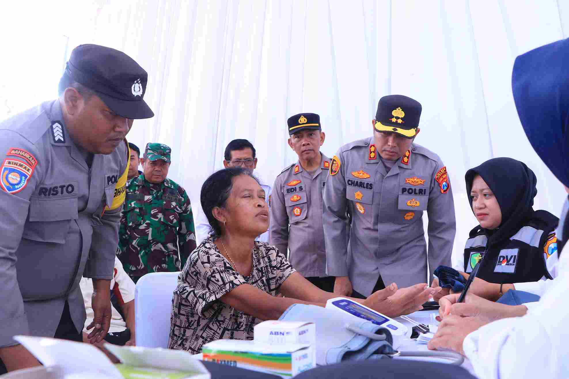 “Melalui kegiatan ini, kami ingin hadir lebih dekat dengan masyarakat, tidak hanya menjaga keamanan, tetapi juga membantu mewujudkan masyarakat yang sehat dan sejahtera,” ujar AKBP Charles P. Tampubolon.
