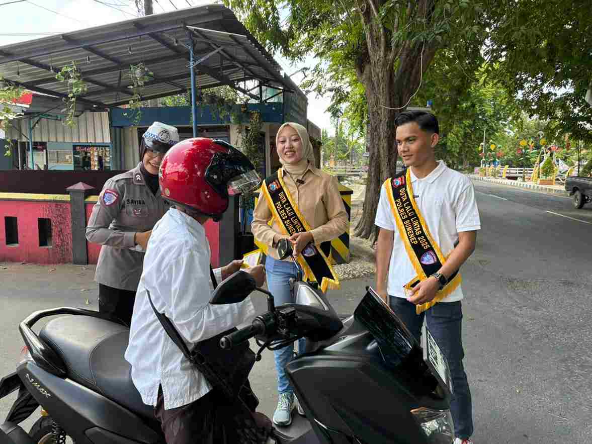 SUMENEP,MHI– Dalam upaya meningkatkan kesadaran masyarakat akan pentingnya tertib berlalu lintas, Satuan Lalu Lintas (Satlantas) Polres Sumenep Polda Jatim menggelar kegiatan “Polantas Menyapa bersama Duta Lalu Lintas 2025” di Pos KTL Simpang 3 Stadion Sumenep, Selasa (14/10/2025).