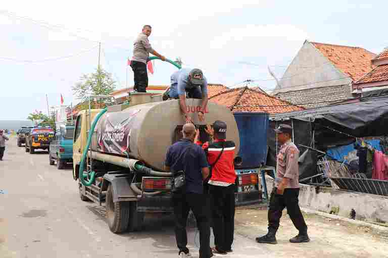 Satu unit mobil tangki berisi air bersih dikerahkan ke lokasi dan langsung mengisi dua tandon penampungan yang berada di RT 6 dan RT 7 RW 002 Dusun Kauman.