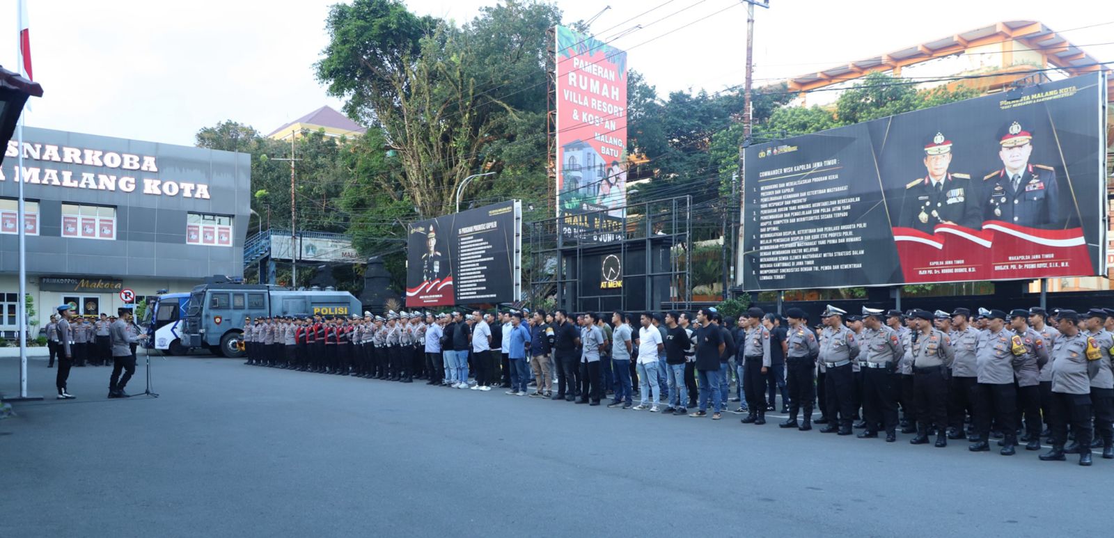 Ada sekitar 250 personel gabungan, yang terdiri dari 200 personel Polresta dan 50 personel dari jajaran Polsek yang kita libatkan,” kata AKBP Oskar usai pimpin apel gelar di halaman Polresta Malang Kota, Kamis (5/6).