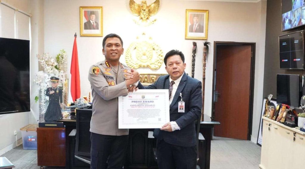 Penghargaan Presisi Award tersebut diberikan Direktur Eksekutif Lemkapi Dr. Edi Saputra Hasibuan kepada Kapolresta Sidoarjo Kombes. Pol. Dr. Christian Tobing di Mako Polresta Sidoarjo pada Rabu (18/2/26) yang lalu.
