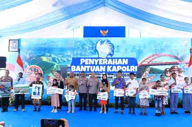 Penyerahan bantuan berlangsung penuh haru dan menjadi wujud nyata kepedulian Kapolri terhadap masa depan putra-putri anggota Polri dan masyarakat yang menjadi korban.