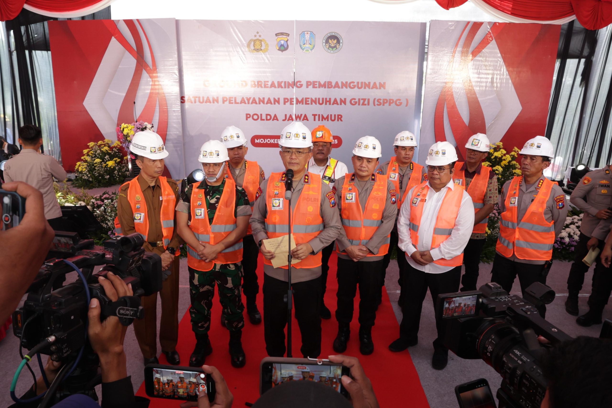 Pembangunan tersebut ditandai dengan peletakan batu pertama oleh Kapolda Jawa Timur, Irjen Pol Drs.Imam Sugianto,M.Si didampingi Wakapolda Jatim, Brigjen Pol Pasma Royce dan para Pejabat Utama Polda Jatim disaksikan oleh perwakilan dari Badan Gizi Nasional dan Forkopimda Kabupaten/Kota Mojokerto.