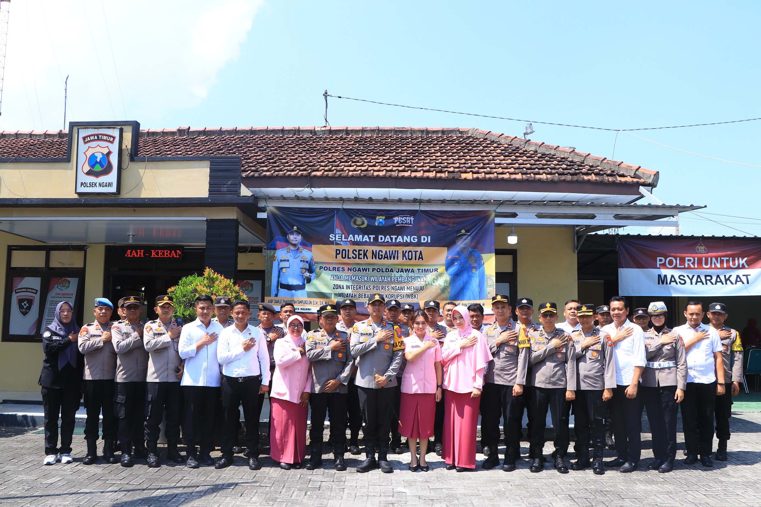 Ngawi, MHI – Kapolres Ngawi, AKBP Charles Pandapotan Tampubolon, S.I.K., S.H., M.H., didampingi oleh Wakapolres Kompol Moh. Asrori Khadafi, S.H., serta Pejabat Utama (PJU) Polres Ngawi, melaksanakan kunjungan kerja ke Polsek Ngawi Kota.